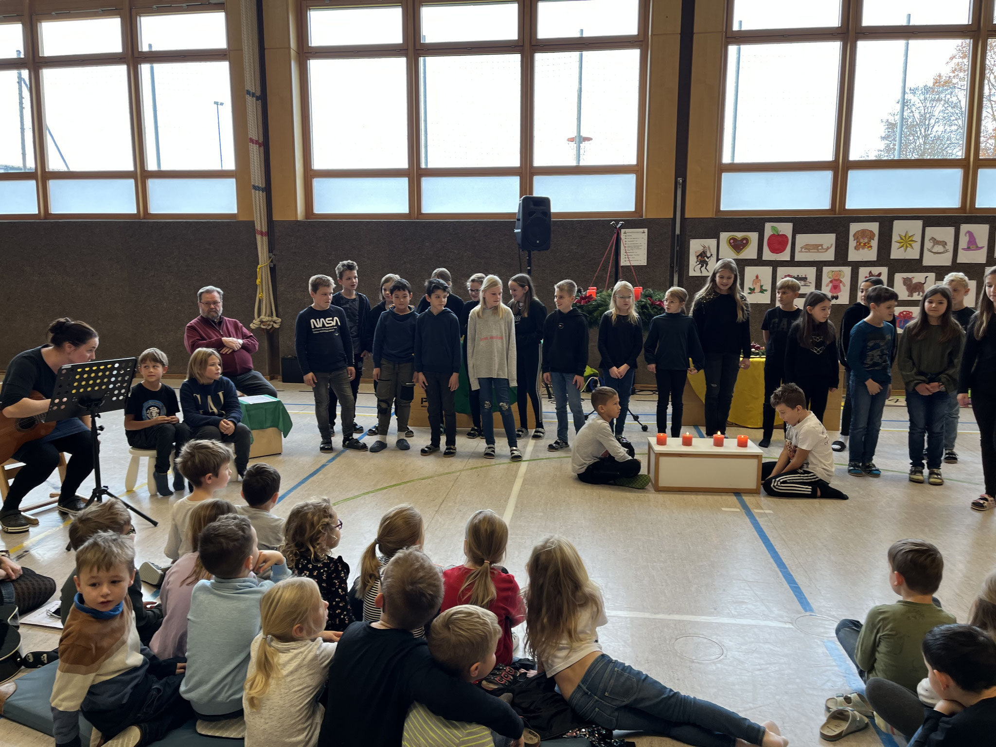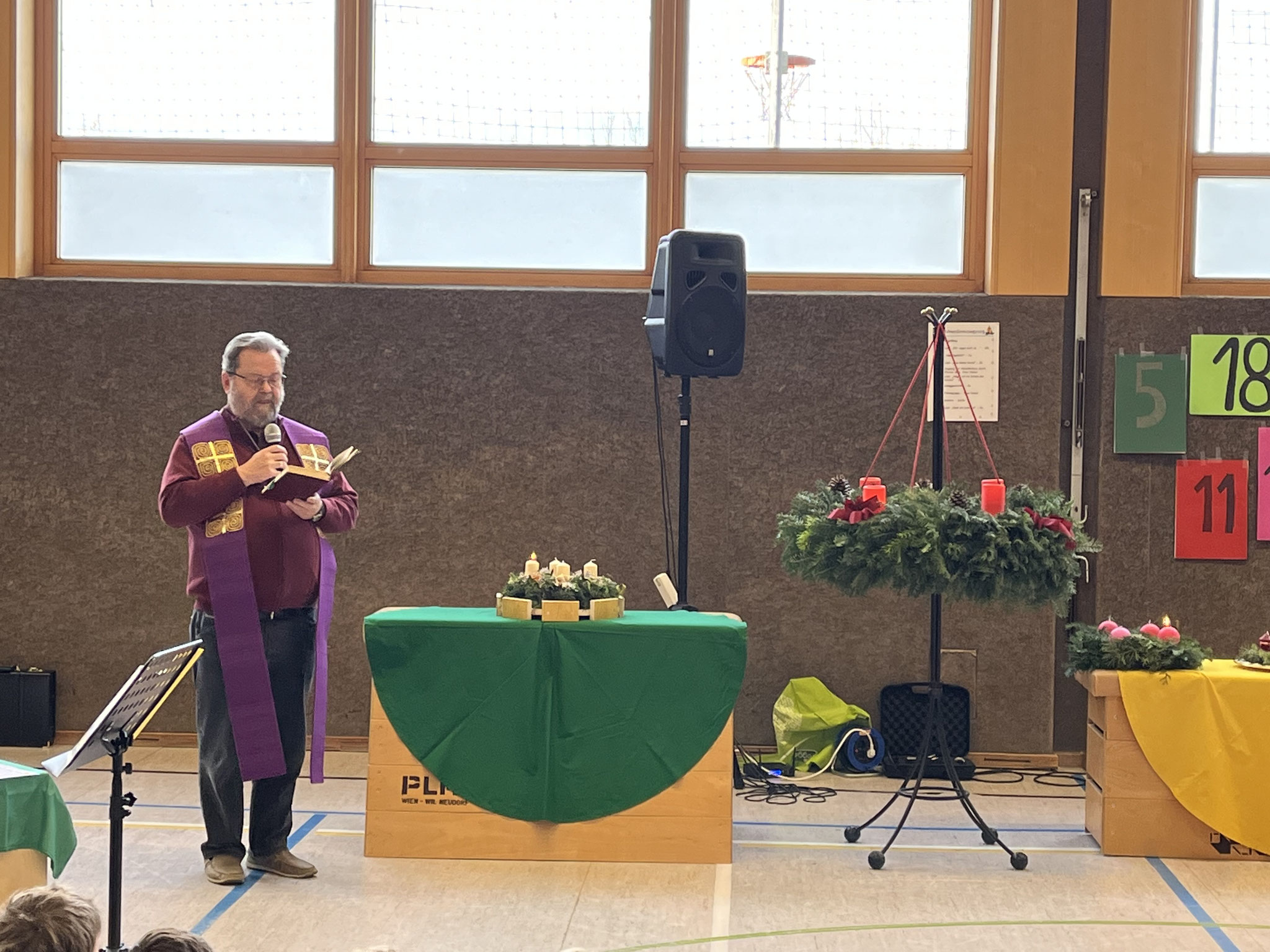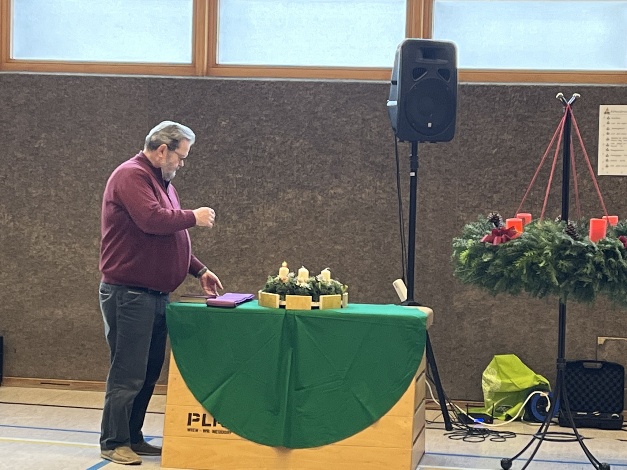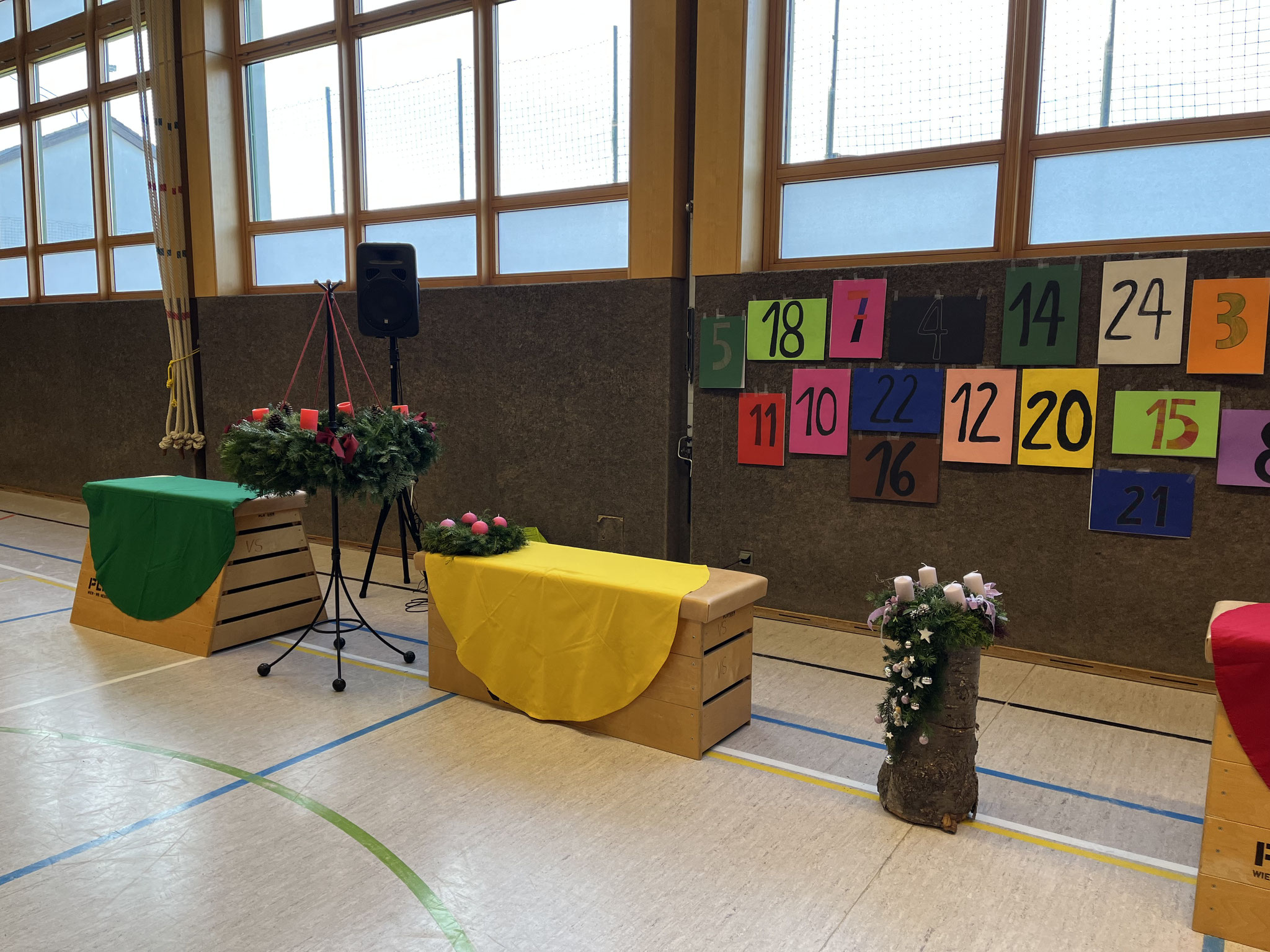 Am 25.November 23 traf sich die gesamte Schulgemeinschaft im Turnsaal, um gemeinsam mit Herrn KonsR Mag. Peter Hainzl die Adventkränze zu segnen. Jede Klasse präsentierte einen kurzen adventlichen Beitrag - Lieder, Gedichte, Klanggeschichten usw.