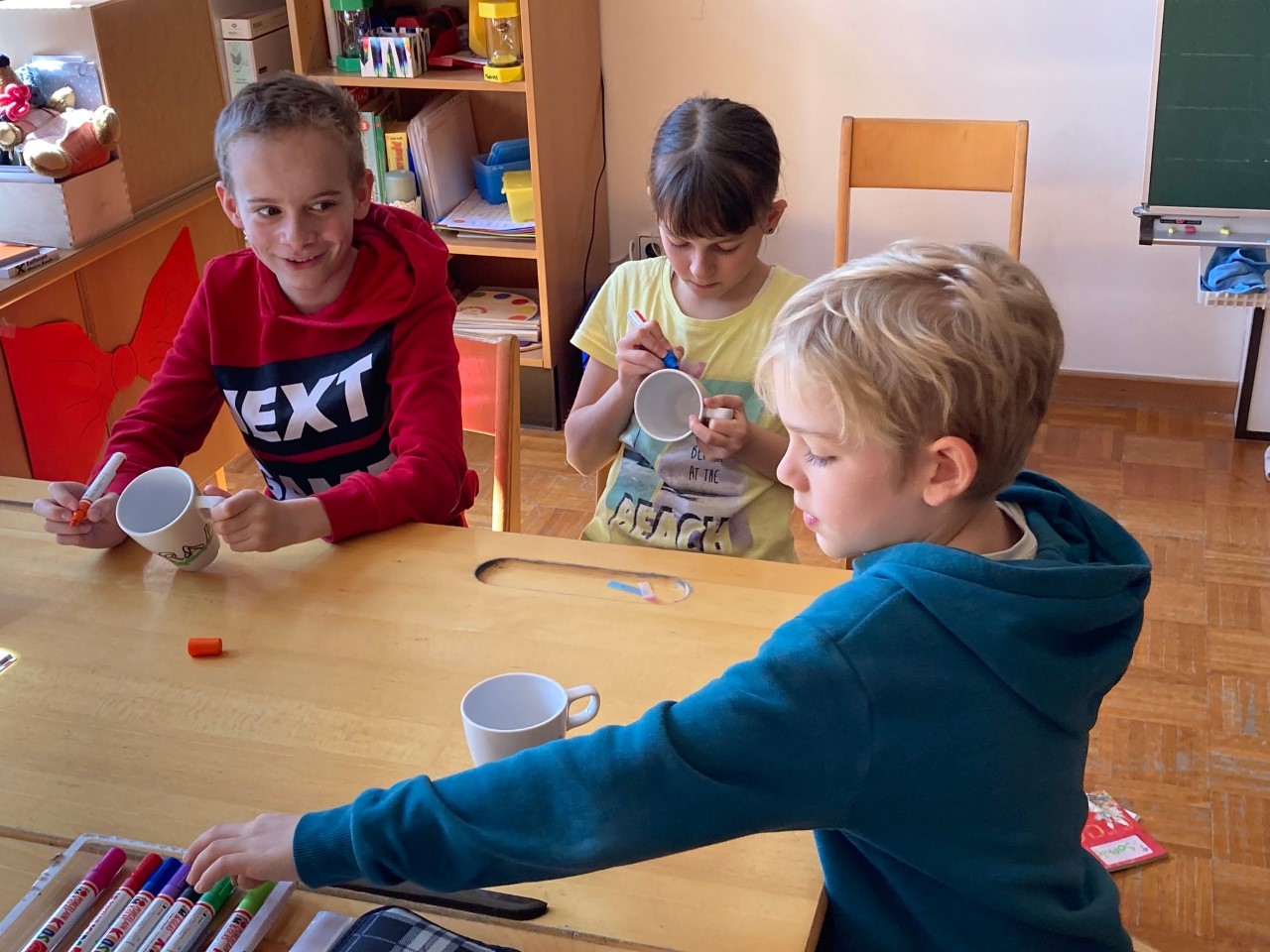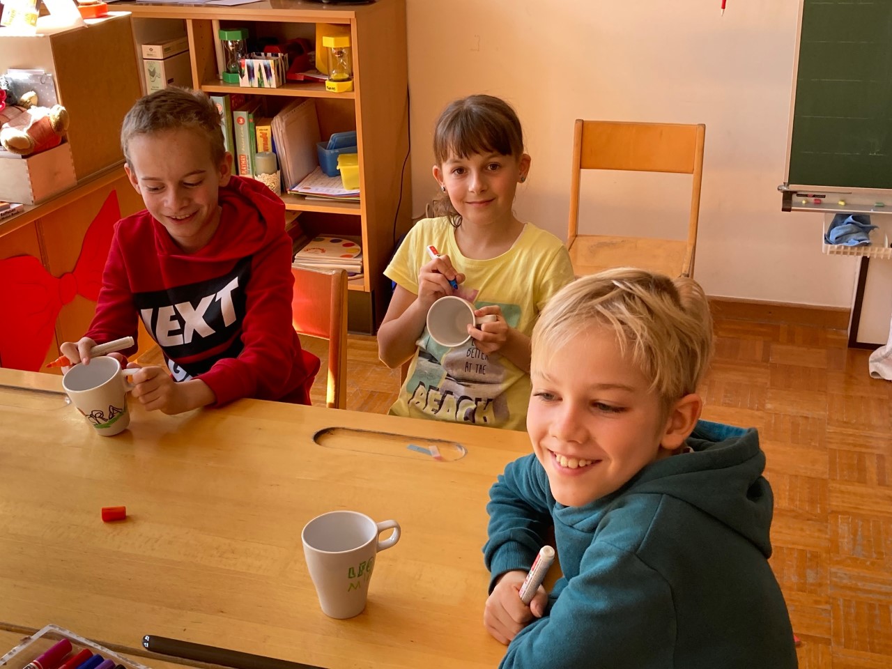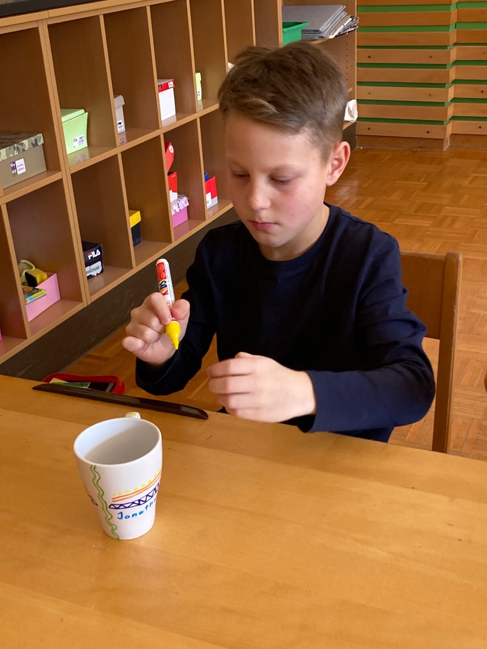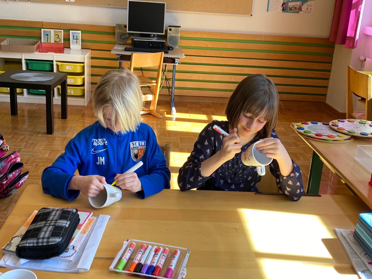 Als Andenken bemalten die Kinder noch ein Teller und eine Tasse, die uns an das gemeinsame Festessen erinnern sollen. Um 11.35 Uhr durften die Schüler früher als gewohnt - zur Feier dieses besonderen Tages - nach Hause gehen.