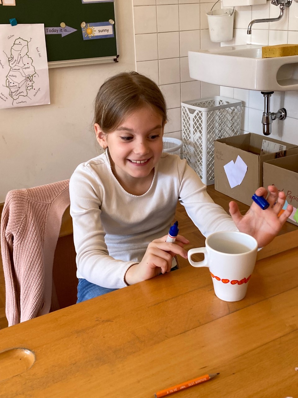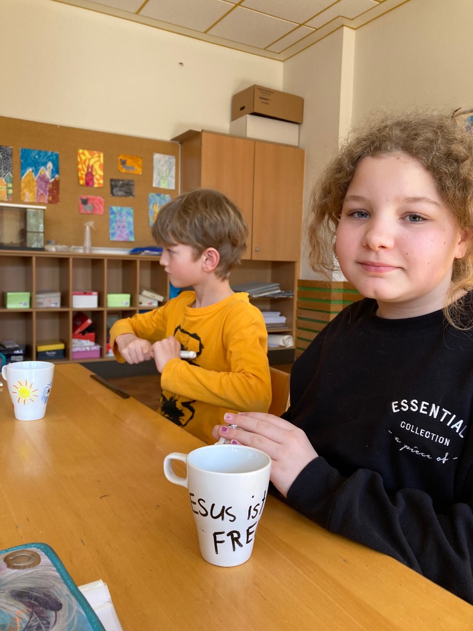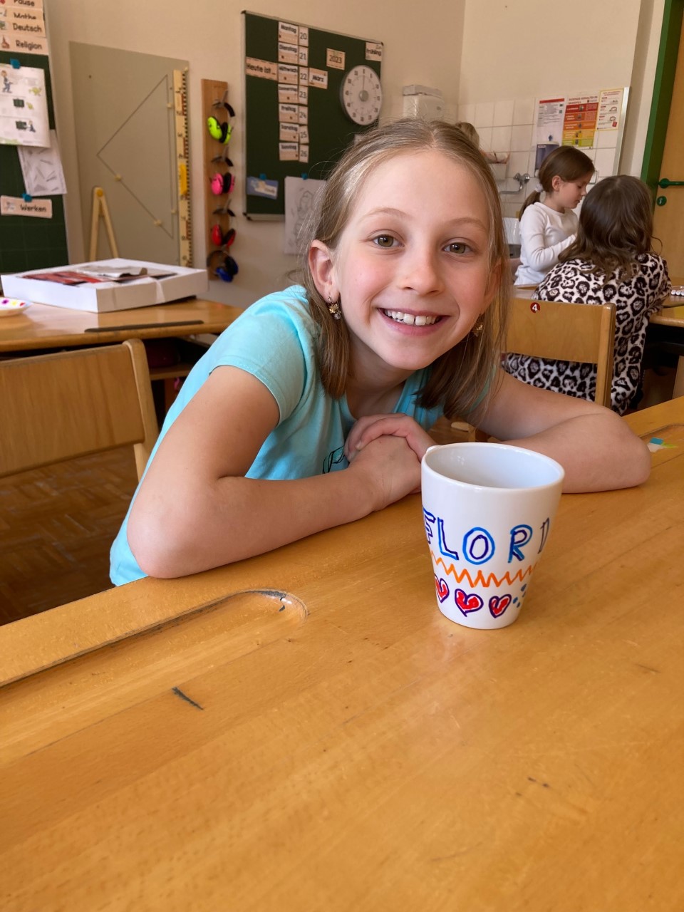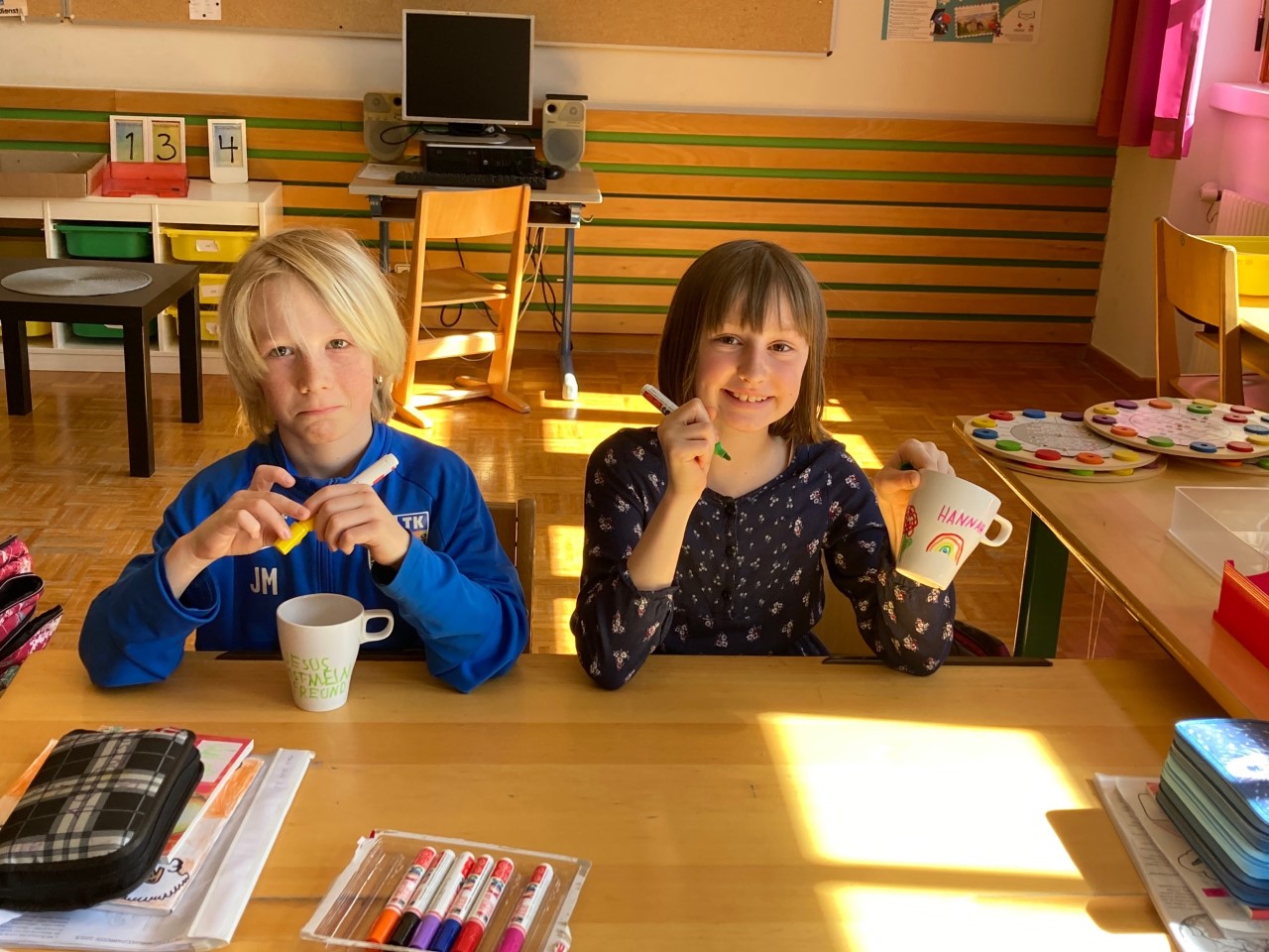 Als Andenken bemalten die Kinder noch ein Teller und eine Tasse, die uns an das gemeinsame Festessen erinnern sollen. Um 11.35 Uhr durften die Schüler früher als gewohnt - zur Feier dieses besonderen Tages - nach Hause gehen.