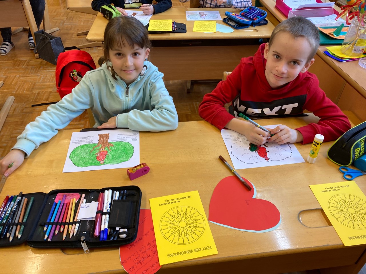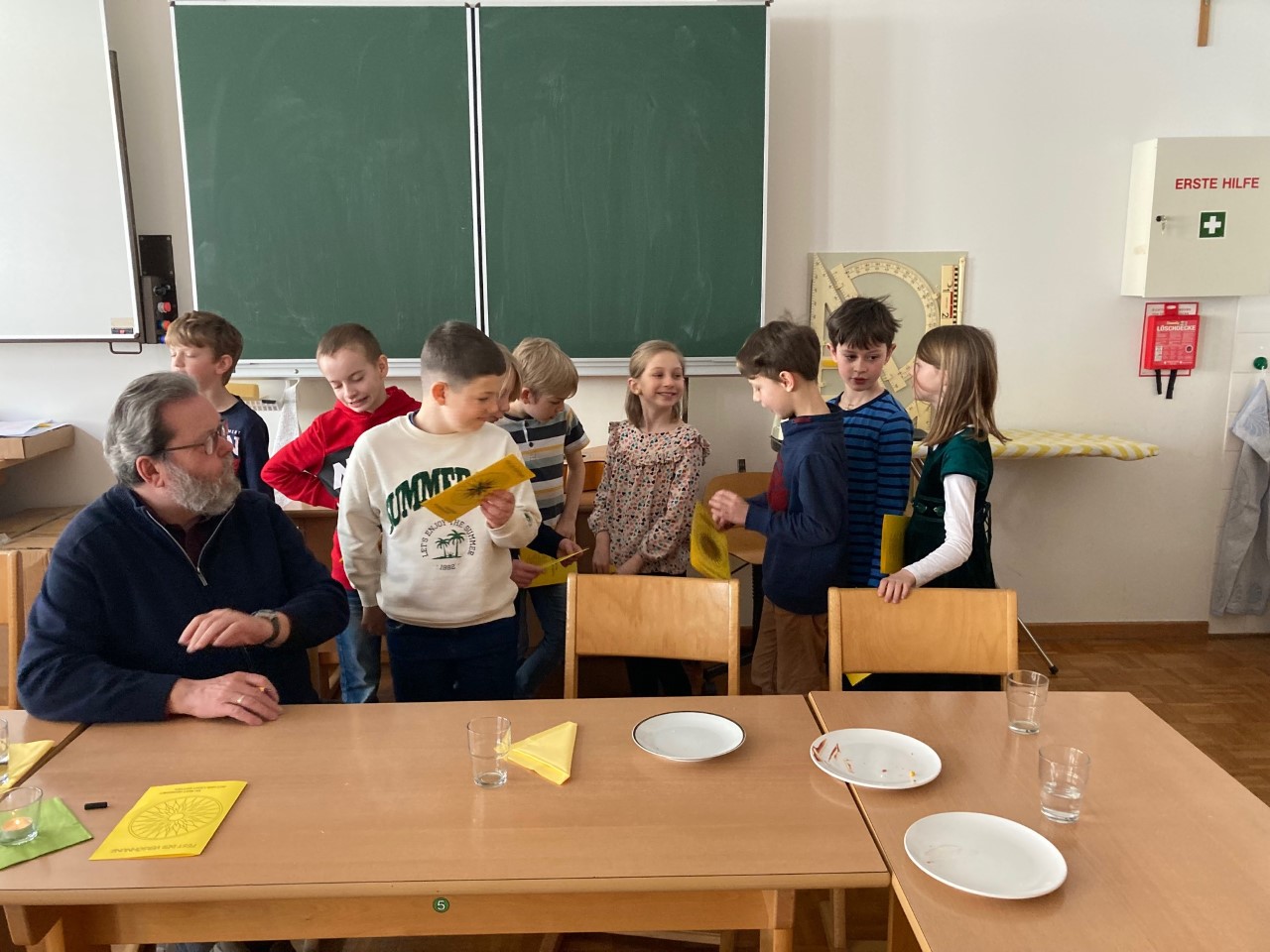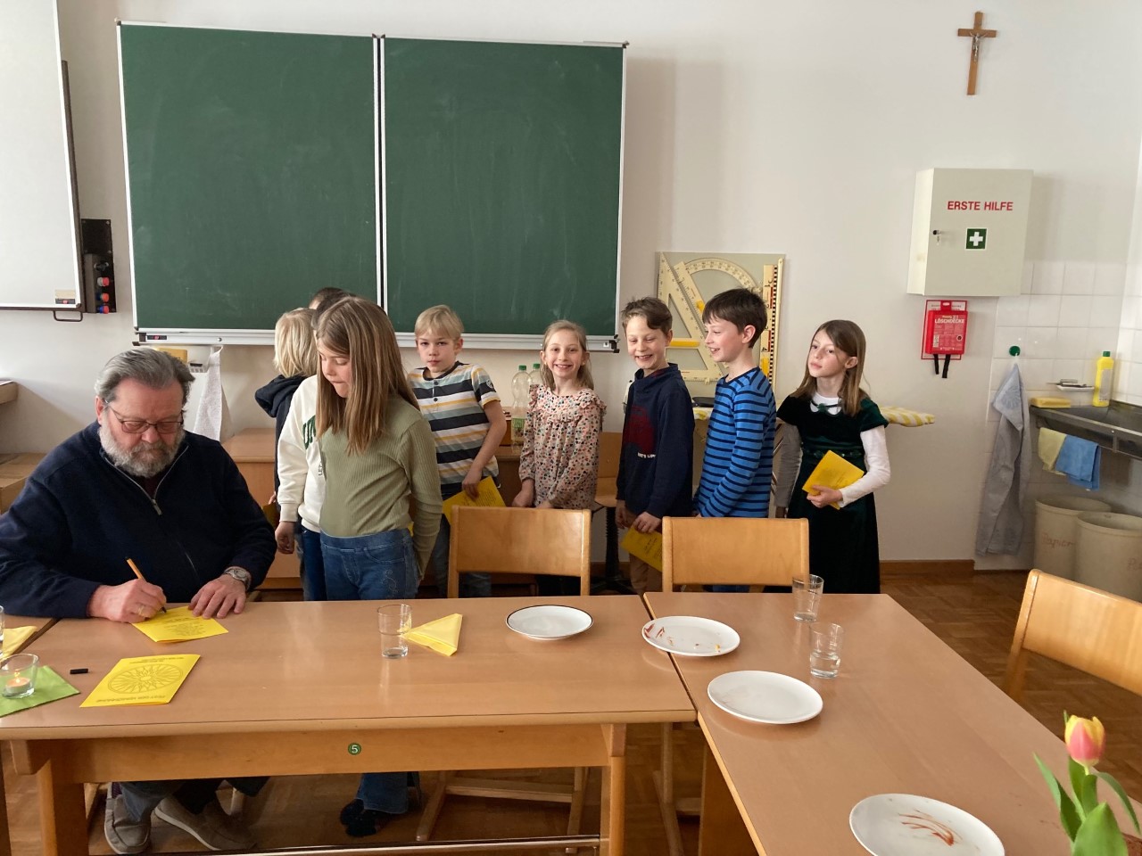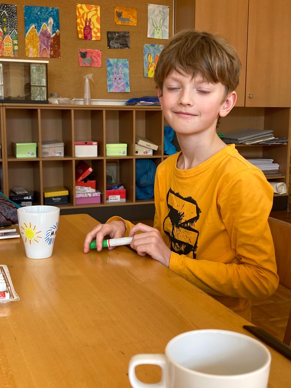 Als Andenken bemalten die Kinder noch ein Teller und eine Tasse, die uns an das gemeinsame Festessen erinnern sollen. Um 11.35 Uhr durften die Schüler früher als gewohnt - zur Feier dieses besonderen Tages - nach Hause gehen.